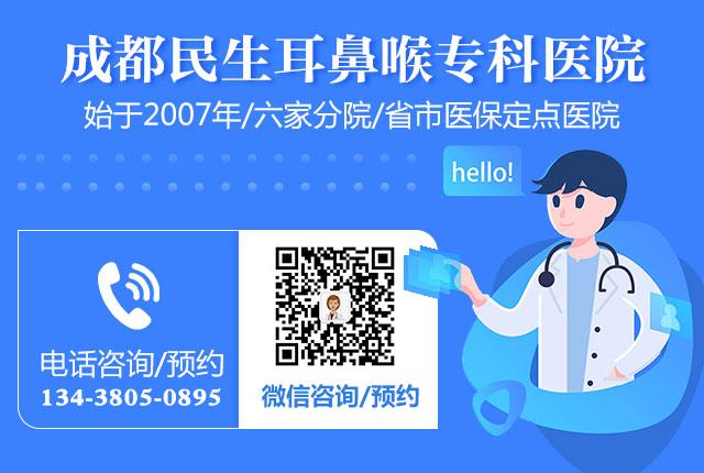 預(yù)約看診耳鼻喉疾病,可以直接撥打成都民生耳鼻喉醫(yī)院24小時(shí)健康熱線或添加微信:134-3805-0895,進(jìn)行咨詢哦!