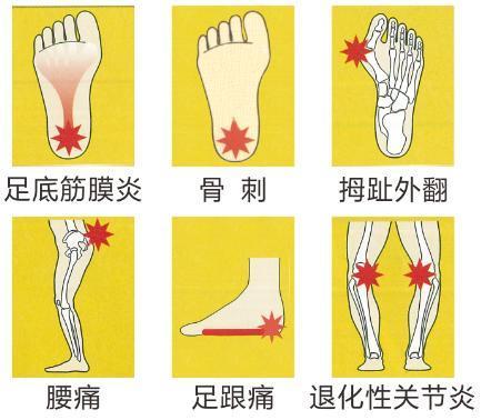 足部扁平、拇趾外翻、后足外翻和X形腿等外觀問題,只是扁平足帶來的表象。從人體運動生物力學角度分析,長期異常的走路姿勢會直接影響足踝關節(jié)的負重方式,從而產生相應的調整和形變,會導致跟腱或足底筋膜的過度負重,引起足跟或足底疼痛不適;長時間行走還可能會壓迫足底血管和神經導致足底易疲勞、發(fā)麻等。