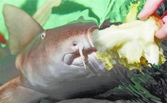 這只飲食習慣發(fā)生翻天覆地變化的鯊魚屬于鉸口鯊,名為“弗洛倫斯”,伸長6英尺(約合1.8米)。它原本是吃肉的,但2009年做了一個手術(shù)、從下巴取出一個釣魚鉤后,就再也不吃常規(guī)食物了,卻對蔬菜“愛不釋口”。實際上,動物訓導員要用一些“狡猾戰(zhàn)術(shù)”才能將蛋白質(zhì)加進弗洛倫斯的飲食中。他們有時把幾片魚肉藏在芹菜中,甚至中間被掏空的黃瓜里。伯明翰國家海洋生物中心負責人格雷厄姆-巴羅斯表示:“為了讓它得到每日必需的蛋白質(zhì),不得不把魚肉片藏在芹菜桿、中空的黃瓜和生菜葉里。你可要把魚肉藏好了,要是被發(fā)現(xiàn),它就會對你提供的食物置之不理,然后等著真正的素食。”弗洛倫斯的口中排滿鋒利的鋸齒狀牙齒,它們的用途是撕碎魚和甲殼動物。但它一反常態(tài),用這些可怕的利齒嚼碎西蘭花、卷心菜和其他綠葉蔬菜,有時甚至從住在同一個水池中的綠海龜“莫洛凱”那里偷走蔬菜。弗洛倫斯不止一次讓它的看守者擔心。巴羅斯表示:“它剛從美國佛羅里達州來到我們在多塞特郡的主要收集中心時,和另外3只鉸口鯊生活在一起。當時,它有好長時間對常規(guī)食物失去興趣。我們給它作了超聲波掃描,結(jié)果發(fā)現(xiàn)一個釣魚鉤深深扎在它的嘴里!睘榇,英國布里斯托爾市國際動物園獸醫(yī)小組獸醫(yī)專家尼克-馬斯特斯為弗洛倫斯做了手術(shù)。他們先給這只鯊魚注射鎮(zhèn)靜劑,然后將其放在一個臨時搭建的手術(shù)臺上,開始了這個開創(chuàng)性手術(shù)。最后,馬斯特斯成功取出釣魚鉤。在整個過程中,他們用軟管將鹽水輸進弗洛倫斯的魚鰓中。巴羅斯表示:“這個釣魚鉤顯然扎在那里好幾年了,已嚴重生銹,這是令它不舒服的原因。它每日服用抗生素,很快就康復了!卑土_斯和他的團隊信心十足,決定不會再讓這只創(chuàng)造歷史的鯊魚因缺少恰當營養(yǎng)生病,他們會想盡辦法確保它擁有一個適當?shù)娘嬍秤媱。這位伯明翰國家海洋生物中心負責人說:“鉸口鯊在野生環(huán)境中偶爾吃一點海藻,所以弗洛倫斯第一次偷吃莫洛凱的綠葉蔬菜時,我們并不感到驚訝。我們只是不希望它完全變成一個素食動物。我們不想看到它和海洋中心水池中的食肉雙髻鯊和黑鰭礁鯊等其他鯊魚難以相處。